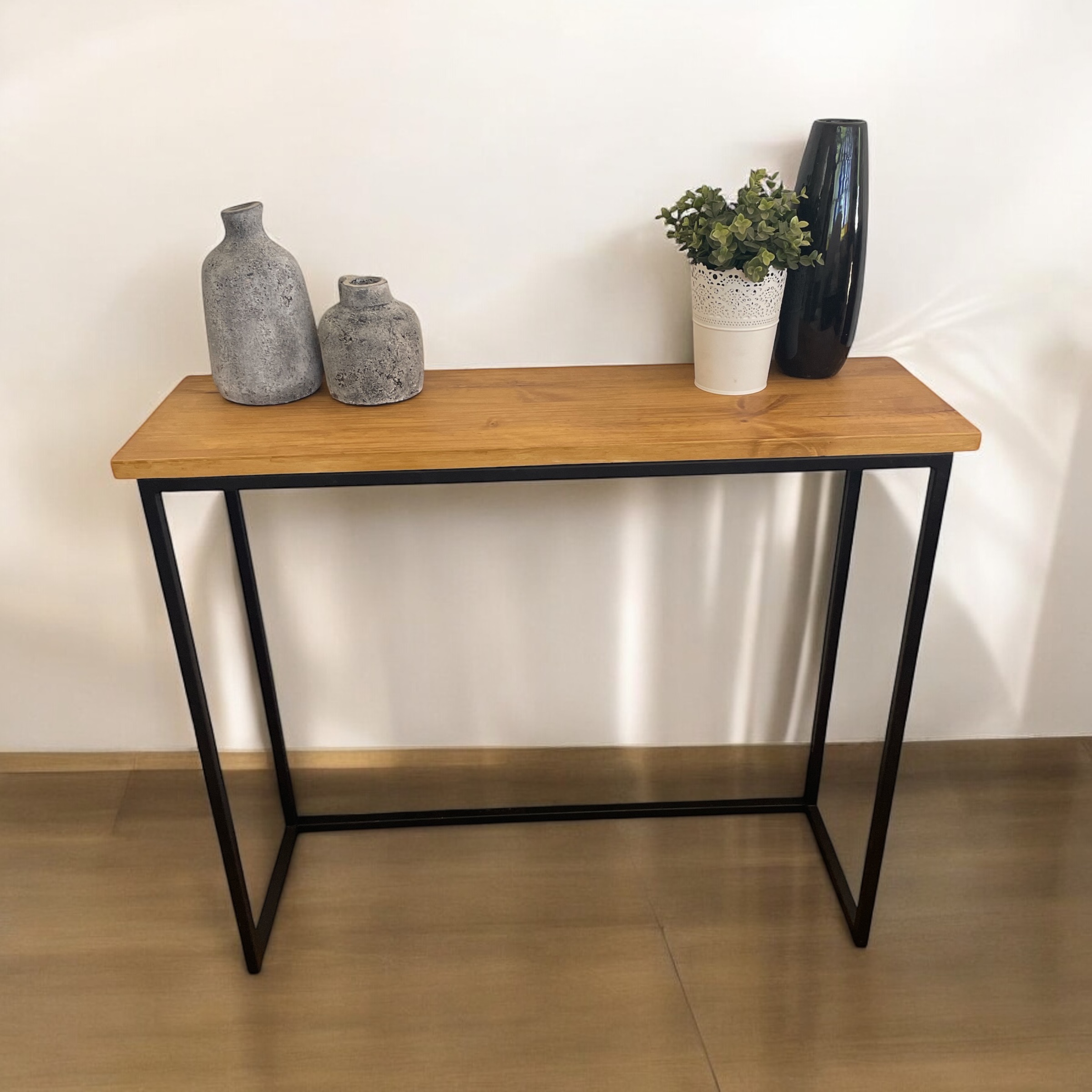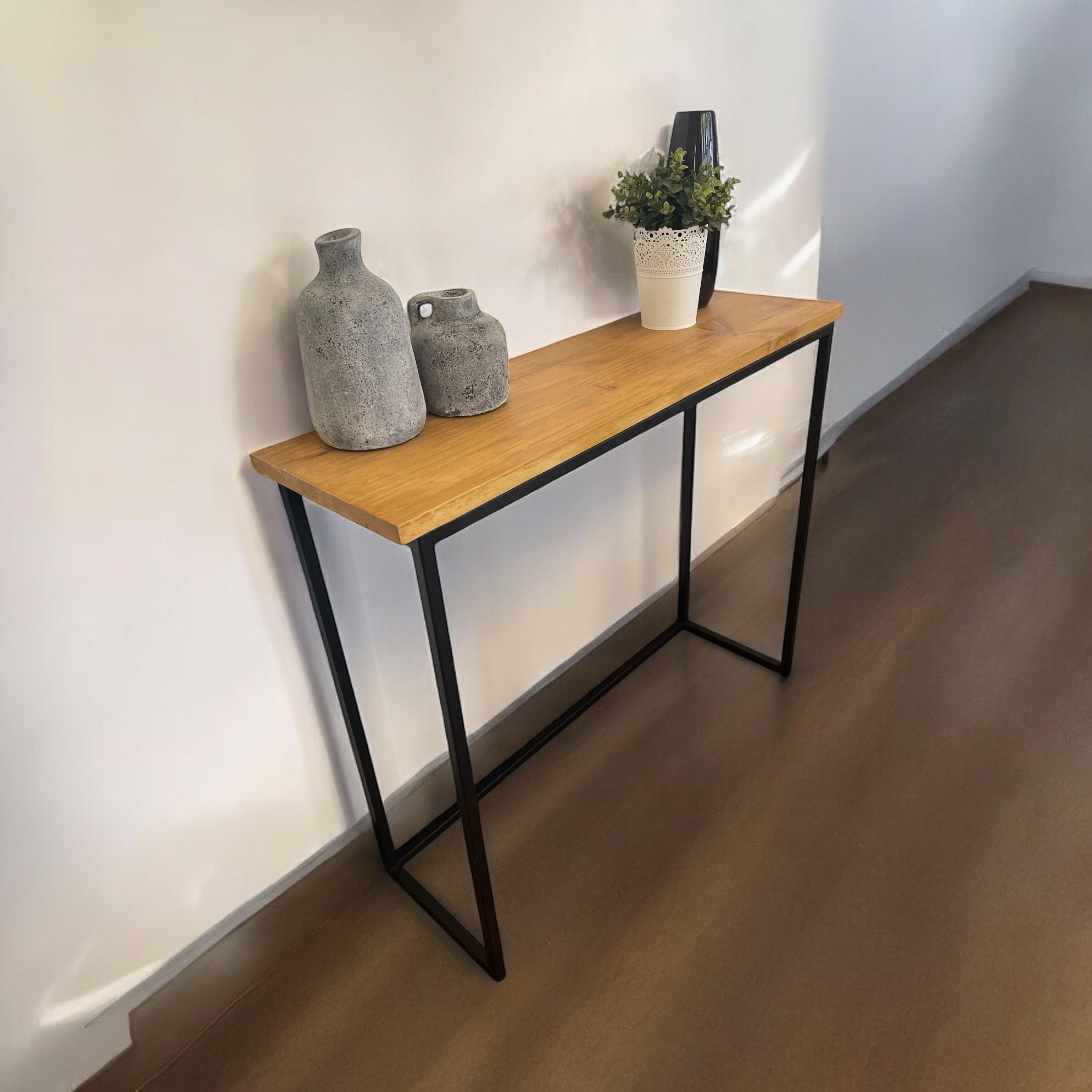 Descripción: Recibidor madera + estructura de hierro 2*2 negro mate