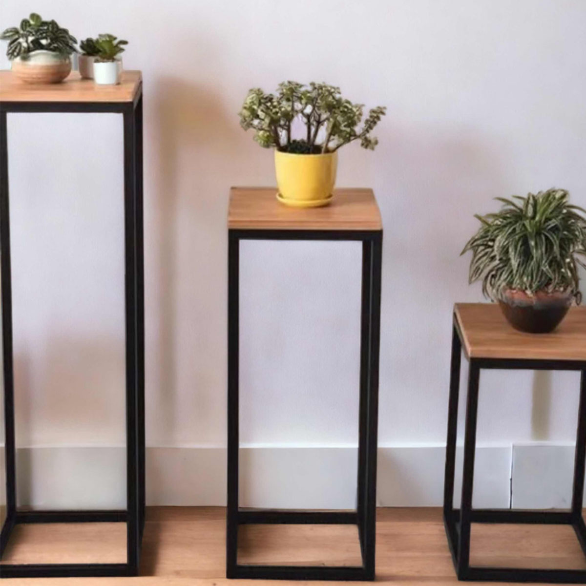 Descripción:Set madera + hierro estructura 25x25x40 – 25x25x60 – 25x25x85